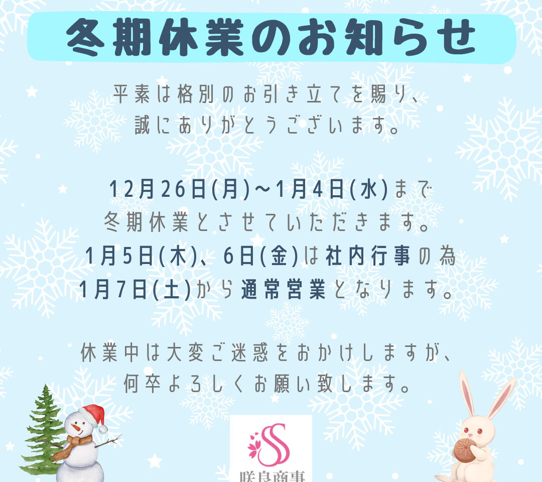 休業中は大変ご迷惑をおかけしますが、何卒よろしくお願い致します。 ⁡ ⁡ ⁡ ⁡
